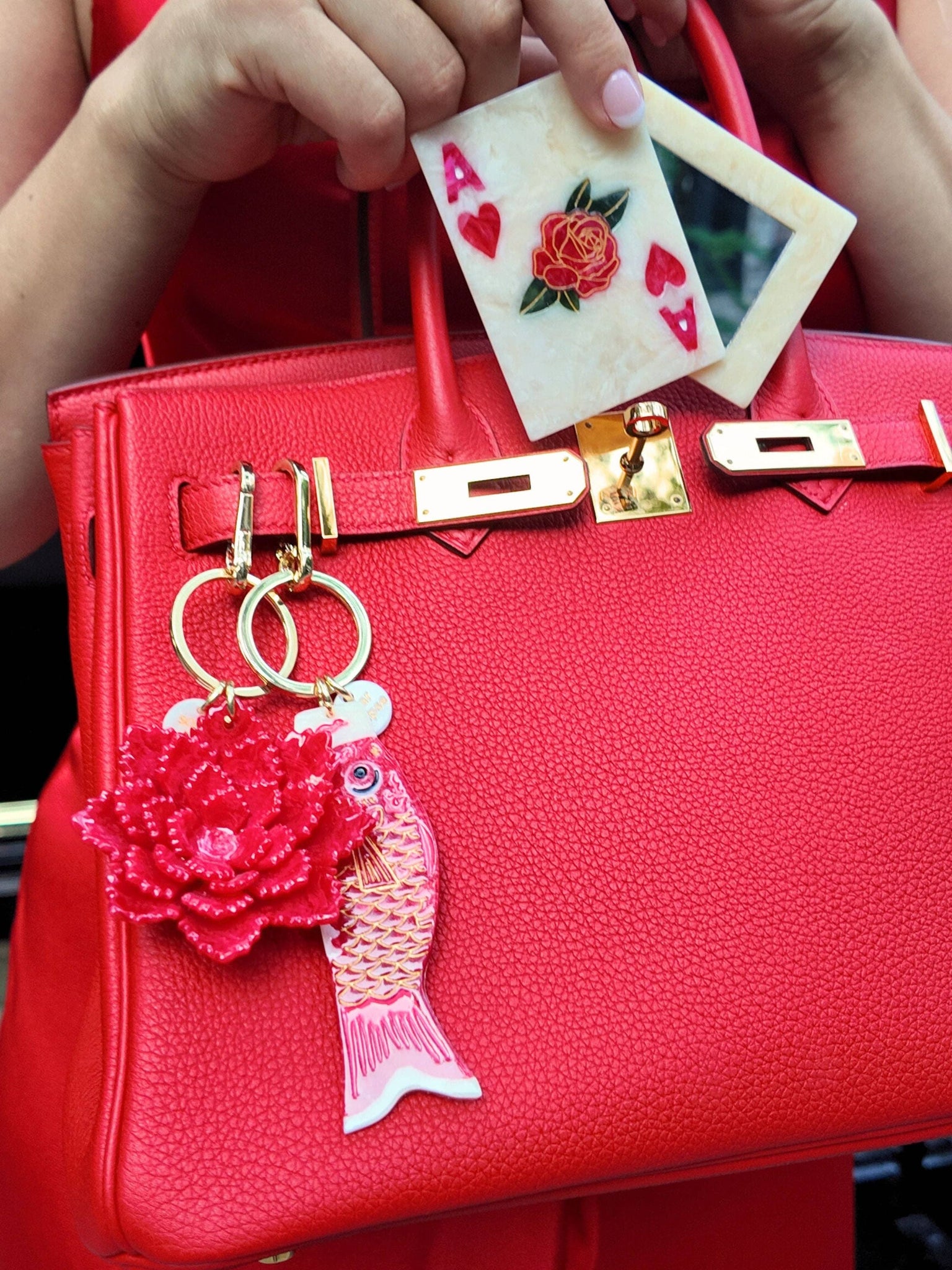 Each mirror features an original, hand-painted design created by Solar Eclipse artists. The Ace of Hearts style is sculptural, playful, and full of personality—turning an everyday object into a signature accessory.